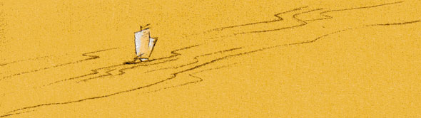 - La mer est belle, le vent bon, les oiseaux marins font leur nid. Partons, mon Maître, pour le pays au-delà des flots.